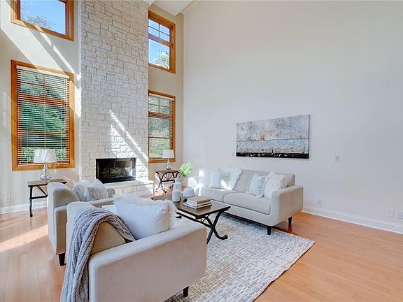 Nestled in the prestigious Ridge at Barton Creek neighborhood, this stunning property is surrounded by the picturesque hills of West Austin and boasts more than 4,000 square feet of luxury laden living. Featuring 4 bedrooms which includes a master suite on both the main level & upper level as well as a laundry room on both levels, 3.5 baths & the perfect combination of finesse & functionality. The grounds are full of lush, established landscaping--a mix of greenery & limestone pavers & a prominent pillared archway & stone steps which lead to the home's grand entry. French doors open into the main foyer and the nearby formal living area. Vaulted ceilings and bays of floor-to-ceiling windows add to the open feel of the home's lower level. Immaculate kitchen features Luxor stone countertops, an oversized island, and a large walk-in pantry. It's also equipped with first-class appliances & undercabinet lighting. Flex space/playroom on upper level completes this thoughtful, flexible floor plan with exceptional attention to detail. Additional, notable highlights include maple hardwood floors, french drain along side of house, CAT 5 wiring in all rooms & around 600 sq ft added to main level bedrm to establish two true master suites in the home. Spacious 2 car garage that includes golf cart space. Pristine and extremely well maintained, this elegant home is ready for move-in.
