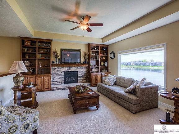 Beautiful ranch villa with spectacular curb side appeal in this 55+ community! Welcomed in by an arched entry way and immaculate wood floors. Witness STUNNING views of the lake from the livingroom or the walking trail that's accessed from your own backyard. Home has an open floor plan featuring a fireplace, curved breakfast bar, granite counter tops, and stainless steel appliances. Main floor has two large bedrooms and master bath with elements like a whirl pool tub, double sinks, tiled shower, and walk-in closet. Finished basement with another fireplace, bedroom, and full bath. Tons of area for extra storage! When you thought this couldnt't get better the walk out basement leads to covered patio and seated gas fire pit area with again amazing views of the lake just in time for the warm weather!