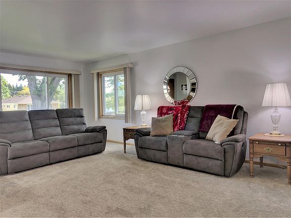 Ranch style home with 5-bedrooms, 2-bathrooms, updated windows, steel siding, main floor laundry option, newer carpet upstairs & down, 2-stall attached garage, landscaped yard with concrete curbing & an underground sprinkler system. The main floor has 3-bedrooms with hardwood floors, full bath, large living room with great natural light, functional kitchen & dining room layout. The lower level features a family room with 2 entertaining areas, 3/4 bathroom, large storage room with laundry, & both lower level bedrooms have egress windows. Many costly improvements have been completed on this well-maintained home. Schedule your showing toady.