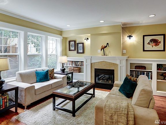 Impeccably maintained Craftsman Wallingford townhouse built w/incredible attention to detail by local builder Avalon NW. Enjoy designer touches thru out w/chef's kitchen, hardwood floors, custom light fixtures, Italian tiled shower, heated bath floors, solid hardwood doors, 2nd FP in master, den/office on entry floor, oversized garage, peaceful, quiet stone patio & fenced yard. Sitting off the street, this home enjoys privacy. The perfect home retreat, walking distance to restaurants & BG trail.