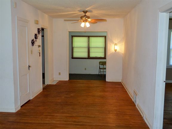 A first time buyers' dream! This 2 bedroom, 1.5 bath brick ranch home offers open living and dining spaces, with hardwood floors that lead through the hallway and into both bedrooms. Take notice of the beautiful cedar coat closet in the living room. Welcome the natural light showing throughout the main floor, while ceiling fans add extra enhancement along with the central air to keep the rooms cool on hot days. The kitchen includes all appliances and boasts unique oak cabinetry. You'll love the bonus feature of this home, an add-on space that can be used as a sun room, play room, family room or office space. There are also lots of windows and a half bath with washer/dryer hookups for your convenience. The basement houses an additional large family room, plenty of storage and an unfinished area with a built in cabinet. This space would be perfect for a home theater, gym, or whatever you desire. Enjoy the well manicured lawns, and relax on the back deck under the mature tree which provides nice shade. Welcome home!