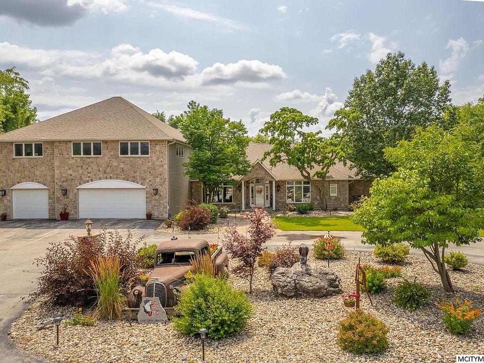 A Unique Gem! You’ll never want to leave this contemporary 5 bed, 4 1/2 bath home once you step inside. The formal dining and living areas feature Woodharbor Cherry built-ins, vaulted and tray ceilings, along with a two-sided fireplace to create a warm welcome. The open floor plan enhances the flow throughout. The state-of-the-art Woodharbor kitchen features cherry cabinets, a wine hutch, pull-out shelves, pantry, dining area, and a bar counter for six, opening up to a serene three-sided glass four-seasons room. The main level primary boasts cherry built-ins, a spacious walk-in closet, and large whirlpool bath with a bay window. Featuring stunning natural views through the west-facing windows at the back of the home with a newer 30x40 heated shop with all the extras. Enjoy your 2 acre, professionally landscaped property with 2 patios & a circular driveway. The treed backyard includes a terraced walkway leading to the Winnebago River. Get a complete list of updates on your new HOME!