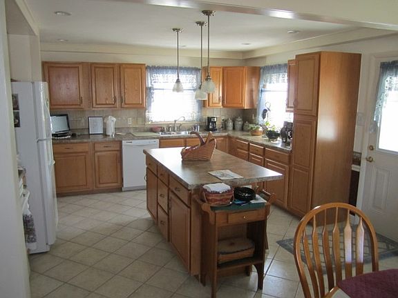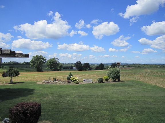 Million dollar farm views. Updated country Cape. New kitchen cabinets and island. First floor bedroom, bath and laundry. Lots of replacement windows. Cozy front porch and large rear deck. Nice size garage. Large shed. Basement with lots of possibilities. Move in ready and a 1 year AHS home warranty.