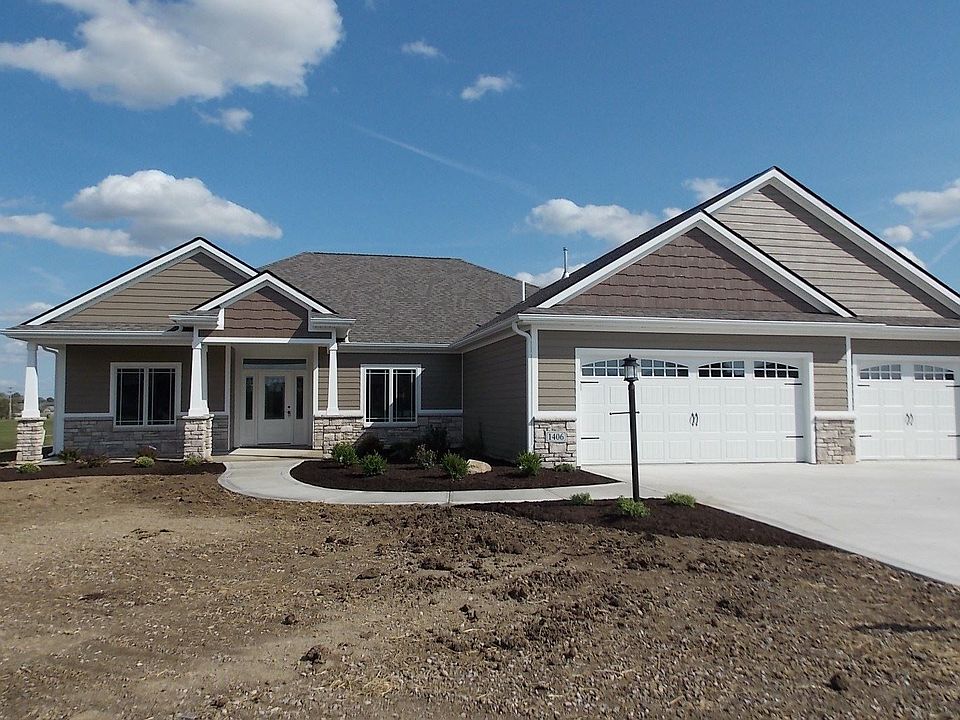 **** OPEN HOUSE SUNDAY, JAN 27th; 1:00 - 4:00 pm **** Gorgeous new spec home with all the nice amenities and a 4 CAR Garage built by Tom Schmucker & Sons. Open split 3 BR floor plan with a den. Spacious GR that opens directly to a large kitchen with island and spacious semi-formal dining area. Center island kitchen with custom cabinetry by D & B Cabinets with soft close drawers. Den features a small closet, bookshelves & glass french doors. Kitchen has a walk-in pantry, granite countertops and desk area. Master bedroom suite has treyed ceiling, 2 tier closet, tiled shower with rain head and large double vanity with granite tops. Large front porch will accommodate nice furniture plus a covered porch that can be screened or enclosed. Amazing garage with workshop area, a 38 ft. deep 3rd bay area & floored attic space. Other features include Andersen 400 series windows, 50 gal. HWH, Hi-Efficiency Furnace, Garage doors with glass inserts and extra wide pull-down attic stairs. Make this your stunning new home!! A MUST SEE if you are thinking about building!!