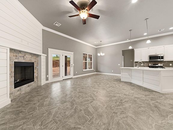 New 4br/2ba home with all the bells and whistles. Rare find in a rental. Less than a year old! Kitchen amenities include large walk-in pantry, gas range with double oven, and fridge with reverse osmosis water line. White quartz counters, crown molding, and ship-lap details throughout. Master has tray ceilings, spacious bathroom with separate toilet room, and large closet with built-ins. All bedrooms have walk-in closets, and guest bath has double sinks. Whole-house water filtration system and water softener. Large back patio for entertaining. Quiet neighborhood. Walk to Elgin schools, shops, and sports fields, 15 minute drive to Ft. Sill. Lawn maintenance is included. No pets. Available in September.