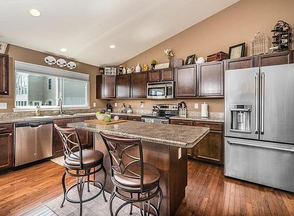 Welcome home!! This gorgeous like new ranch in very sought after Hampton Woods is sure to please! Vaulted great room opens to beautiful kitchen with gleaming hardwood floors, large center island, an abundance of cabinetry, top of the line stainless appliances, vaulted ceiling, recessed LED lighting, and a massive walk in pantry! Don't miss the laundry/mud room you've been longing for off the 3 car garage. Master bedroom suite to retreat to with large walk in closet and luxury bath including the double sink adult height vanity. Spacious secondary bedrooms down the hall, one with walk in closet and the other with dual closet! Plenty of room to grow with the finished lower level! Large bedroom with walk in closet, full bath, family/rec room and an office. You'll still have tons of unfinished area for storage or future finish! Large level lot backs right up to the community playground and basketball court!! Don't miss out on this one!