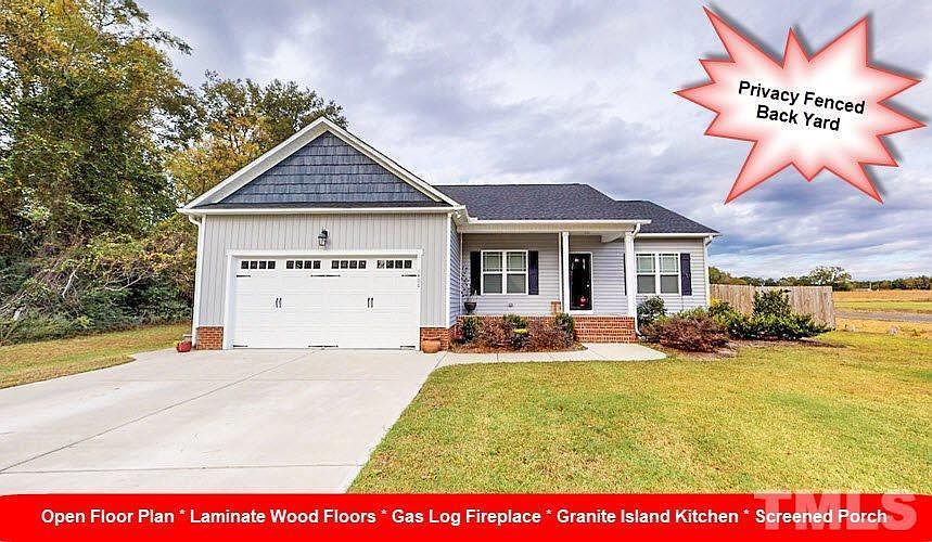 Custom 3BR/2Ba Ranch on Almost an Acre! OPEN FLOOR PLAN* Laminate Wood Floors* Family Room w/ Gas Log Fireplace and Ceiling Fan* Kitchen features Island w/ Breakfast Bar, Granite Counters, Walk In Pantry* Bright Dining Area* Master Suite w/ Huge WIC, Soaking Tub, Separate Shower* Screened Porch leads to Deck overlooking Large Privacy Fenced Back Yard* Outbuilding* Close to I 95