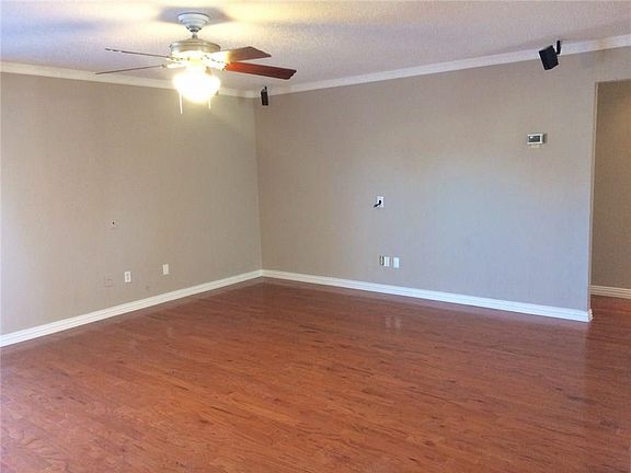 Beautifully Remodeled home 3 bedroom, 2 bathroom home in an awesome neighborhood in Mesquite. Entry opens to living room and dining room with wood floors, crown molding and base boards. Fresh new paint throughout the entire home. Nice size kitchen with natural light from the kitchen window, blacksplash on kitchen with a gas range stove top and built in microwave lots of cabinet and storage space, with large walk in pantry and laundry room. Wood floors throughout the entire house including bedrooms. Tile on kitchen floors, bathrooms and in the shower. The home has pre-wiring speaker system and alarm. Backyard offers a spacious yard with a storage shed the Home also has a nice spacious front yard.