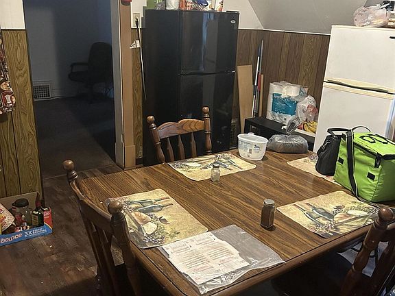 Invest today! Two family home with current units both rented MTM. All utilities included in the rents. Tenants take care of snow and lawn. Off street parking. Back building is locked and seller would stress caution when entering as it has not been used for over 6 years. Newer flooring in both units, new front door main unit, chimney removed and roof repaired by contractor. CASH FLOW!!