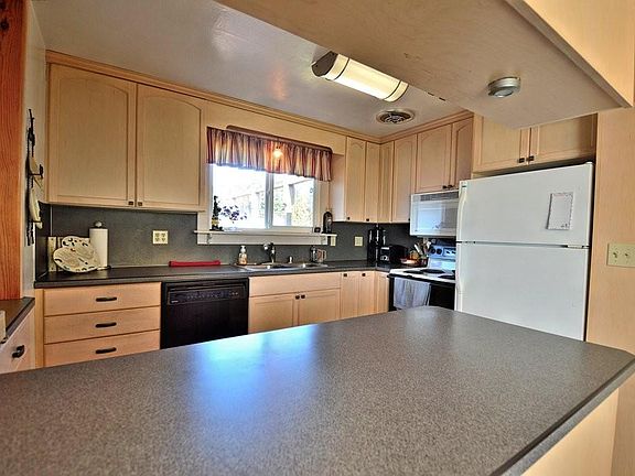 Easy to show home, with a great floor plan that makes it feel bigger. Featuring a newer roof, continuous gutters, Certified wood stove along with electric heat. The low maintenance back yard is stunning with the fully fenced yard, hot tub pad, and a beautiful wood deck perfect for entertaining or just enjoy the peacefulness. Inside you walk into a spacious living room and an perfectly designed upgraded custom kitchen. The home boasts built in's throughout and 2 bd 2 bth, with a attached storage.