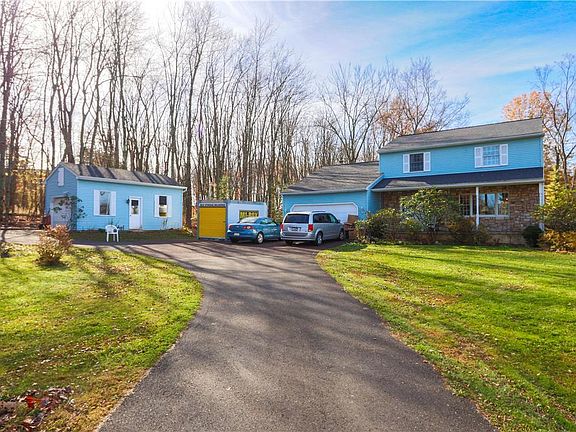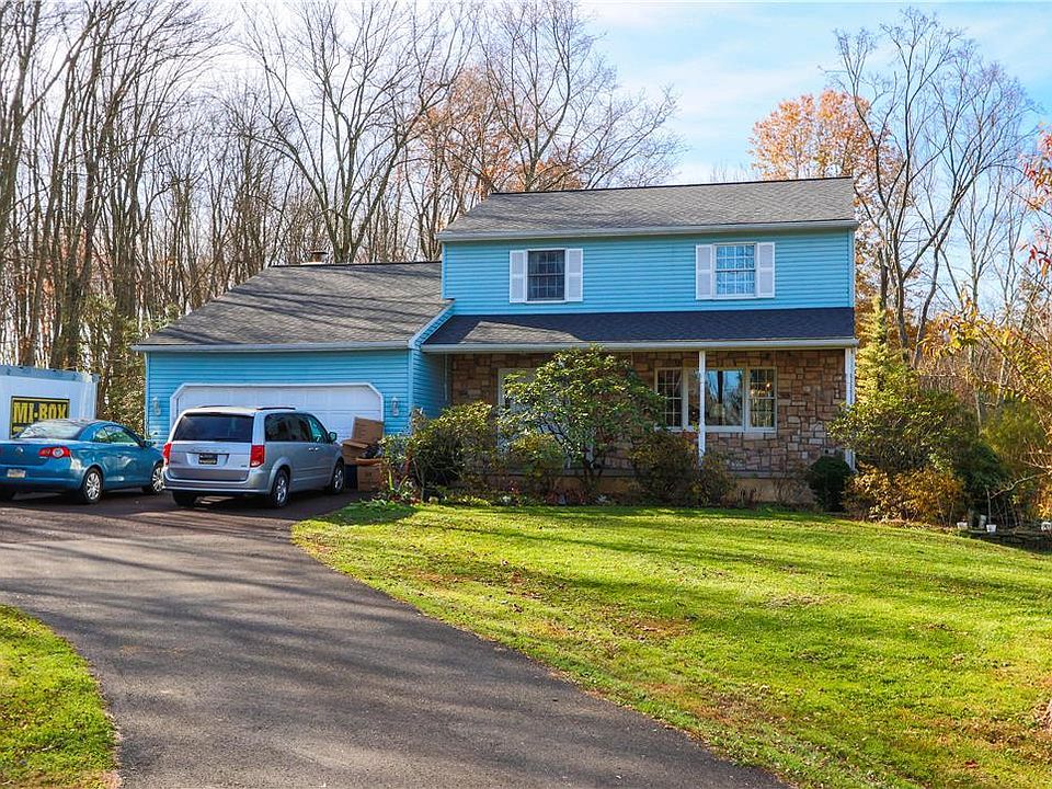 Welcome home to this 4 bed, 2.5 bath Colonial style single family home in Pennridge School District, East Rockhill Twp, PA. The main level includes a large family room w/ stone fireplace leading into the open concept modern kitchen w/ updated cabinets, granite countertops, and stainless steel appliances and a half bath. Eat at the eat-in kitchen area or formal dining room for those large holiday gatherings. The second floor boasts 4 ample sized bedrooms, a full bathroom in addition to the main bedroom with en-suite full bathroom. Plenty of private land surrounds you as this home sits are 1.3 acres+, wooded lot w/ its own pond, fire pit, and garden. Enjoy nature while sitting out on the large wood deck or work in your detached workshop/shed. There is a separate large detached garage allows for additional storage or another workshop/She-He Shed. The home has an attached 2 car oversized garage w/ plenty of attic storage. Full walkout basement ready for your final touches.