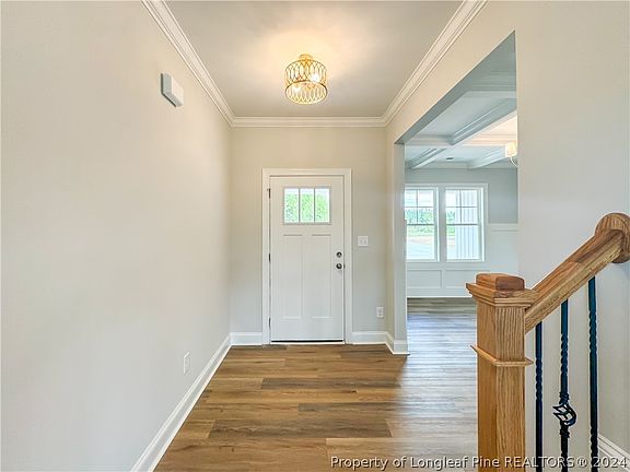 Complete and Ready to Close with 15k use as Buyer Chooses! The Carrabelle by Furr Construction, an exquisite 5-bedroom, 3-bathroom sanctuary. Step into luxury as you enter this home, greeted by a formal dining room adorned with coffered ceilings and intricate wainscoting, setting the stage for sophistication. Seamlessly transitioning from the dining area is a generous great room, perfect for hosting gatherings. The kitchen is a chef's dream, featuring ample counter space adorned with granite countertops and stainless steel appliances. Adjacent to the kitchen, discover a versatile space ideal for a bedroom or home office, complemented by a convenient full bath. Retreat to the serene Owner's Suite, where double tray ceilings and a spacious walk-in closet await. The lavish primary bath is a haven of relaxation, boasting a double vanity, garden tub, and separate shower. Upstairs, you will find a laundry room and three additional bedrooms, two sharing a jack & jill bath.