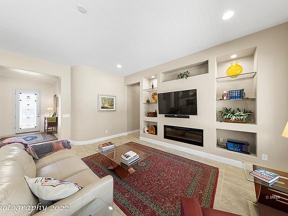 Looking for a Sun City home with more living space? This nicely appointed PURSUIT is situated on a hard-to-find large lot (.24acre) in a cul-de-sac with no neighbors to one side, and offers 10' ceilings, open concept great room, the addition of a sunroom, and a 6' bump out in the garage. The well-appointed kitchen has upgraded cabinets with under cabinet lighting, granite counter tops, a large island with single basin sink and custom pendant lighting overhead, and stainless appliances. The living room has an entertainment wall inset with electric fireplace. The owner's bedroom suite has its own door leading to the backyard patio, the bath has a custom-tiled walk-in shower, and the walk-in closet features an awesome closet organizer with jewelry drawer. Flooring is 20 x 20 tile throughout. Beautifully landscaped, enjoy the great backyard space with extended patio pavers, extra seating area, hot tub and room to add a pool. The insulated garage has storage shelving, epoxied floors, and a mini-split A/C system for heating & cooling. Current owners have added a decorative glass front door, repainted some of the interior walls, updated the dining room light and added more landscaping.