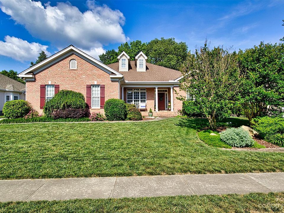 Highly desirable 1 level, all brick, ranch style home in Verdict Ridge Golf and Country Club. As you approach the home you are greeted by a true rocking chair front porch which welcomes you into the home. As you enter you notice an open floor plan that is excellent for entertaining yet space to spread out. The great room features a true dining area, maple hardwoods, bar area, office with glass doors, and a two sided fireplace with sunroom on the back. The eat in kitchen features a breakfast nook, granite tops, ss appliances, tile backsplash and upgraded floor to ceiling cabinets. The bedroom layout is a split bedroom plan with the master on the south side of the home featuring trayed ceilings, barn door on walk in closet, tiled shower, dual vanity, and soaking tub. The other two bedrooms across the home feature hardwoods and a shared bath with tiled shower and glass doors. As you exit the sunroom you are greeted by an outdoor oasis with huge deck, shade, usable yard, and hot tub.