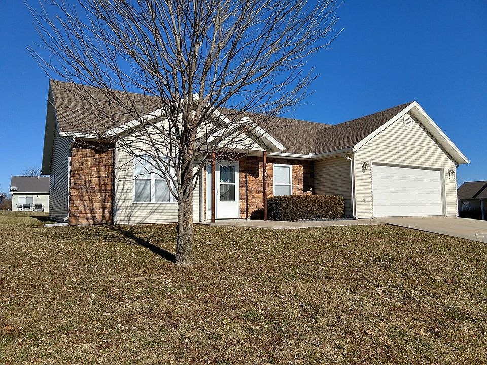 This is a nice modern single family home with 3 bedrooms, 2 baths, and a 2 car garage capable of fitting most pickup trucks. The property is for rent and available in late August. The house is in the Huntington Estates neighborhood, 5 minutes from the Whiteman AFB main gate and has easy access to Hwy 50. There are no steps inside or out (open concept, non-split level home). This home has attractive blackout blinds in the bedrooms great for shift workers or those who like sleeping in. It also comes equipped with a washer and dryer, sodded lawn and a back porch grilling patio. The kitchen is huge, has a garbage disposal, fridge, electric glass cook top range, microwave, dishwasher, custom storage island, and plenty of storage and pantry space. The house is also highly energy efficient with double-pane windows, LED lightbulbs installed in all the overhead ceiling lights, plenty of insulation, and a programmable Nest smart thermostat. The electric bills run ~$85, water/sewer/trash run ~$40 total, and high quality (gaming capable) cable internet can be negotiated with Charter for ~$55 monthly (rates can vary depending on choice of providers and personal usage, these are just estimates for applicants' financial planning purposes). Pets can be allowed with prior approval and increased rent/deposit. I am highly military friendly as an active duty member myself. Feel free to contact me with any questions. Tenants pay utilities and lawn care. All occupants must be on the lease and qualified via background check and income verification. No smoking, subleasing, or commercial activities allowed. Pets require prior approval, which if approved will be subject to increased rent and security deposit on a case by case basis. See lease agreement for full terms.