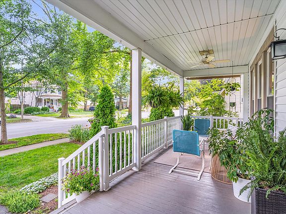An old-house dream come true! All the original charm of a historic home without the hassle of renovation. You can move right into this well-maintained century home and enjoy the rest of the summer on your idyllic front porch or relaxing on your generous, shaded deck in the privacy-fenced backyard. These serene outdoor living spaces are surrounded by beautiful perennial gardens for blooms all season long. Inside the traditional four-square home you'll find original woodwork, 9-foot ceilings, pocket doors, and hardwood floors. Numerous large windows bathe the house in natural light. The first floor features an open flow between the living room, dining room, and kitchen, making it the perfect space for gathering and entertaining. The kitchen features an enameled cast iron sink, subway tile, and butcher block counters; the island is the perfect place for morning coffee. A spacious mudroom off the kitchen provides a great drop zone and storage space. The first floor also has a full bathroom and a bonus room (perfect for your office, play room, etc.). Upstairs there are four bedrooms and the second full bath; one bedroom features an original built-in armoire and two of the bedroom closets have built-in dressers. The full, unfinished basement provides ample storage or hobby space and has a large laundry area. The home also features a two-car garage-a rarity in old houses! Since 2007, nearly everything in the home has been restored or renovated (with respect for the period of the home). The most recent updates include a new roof on the house and garage with transferrable warranty (2023), new carpeting throughout the 2nd floor (2023), and radon mitigation (2024). The smart doorbell and thermostat will remain. The home is one block from Eisner Park in a wonderful, established, friendly neighborhood; the central location is close to downtown, business districts, interstate access and on the MTD bus line. The home has been inspected for buyer convenience and needed repairs have been/will be completed. You won't want to miss this beautiful home..Come visit, you will be glad you did!!
