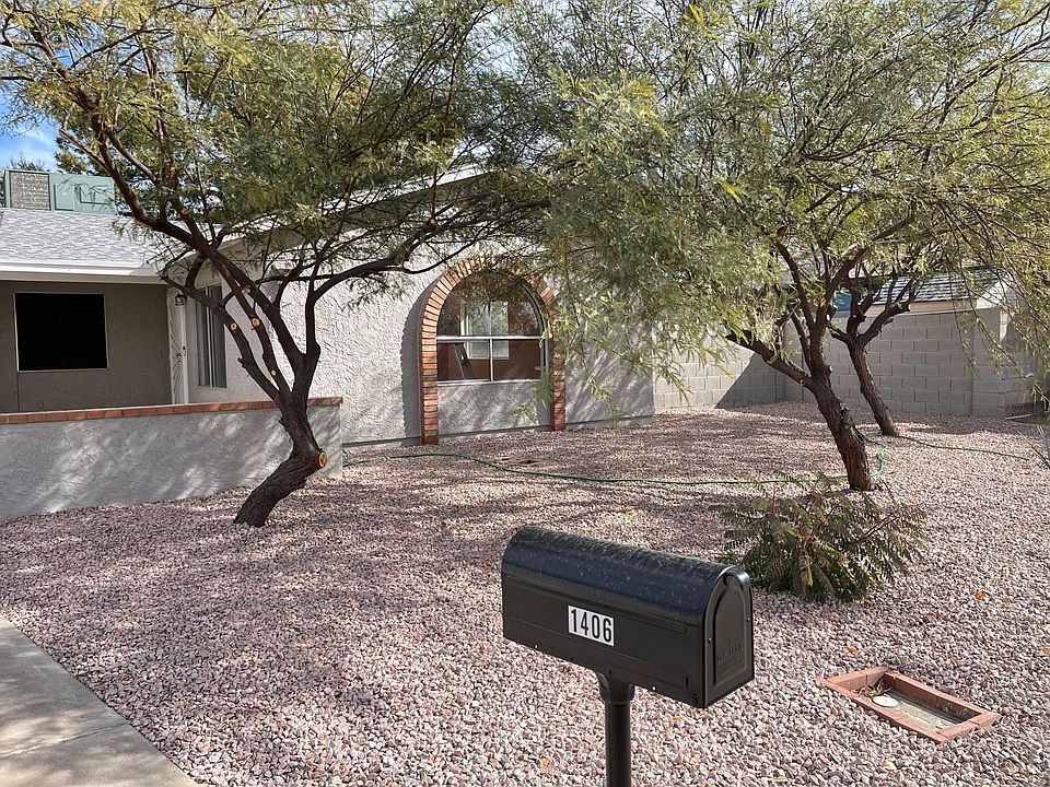 Gardeners dream home for rent in Chandler! No HOA community with Pomeroy elementary and Shawnee Park and dog park within walking distance! This home is centrally located with everything feeling close and easy to get to. 3 bedroom, 2 bath house with a 2 car garage plus 2 off street parking spaces in driveway. Home features an open kitchen with breakfast bar, wood fireplace in family/dining room and large living room as you enter from the front door with Saltillo tile throughout. Home sits on a huge lot with low maintenance desert landscape in front yard. The back yard has a full house length covered patio for all of your entertaining needs and come with lots of fruit trees (orange, lemon, pomegranate, nectarine, figs, guava and a mulberry bush). There is also a garden shed and raised garden bed/shade house ready for planting. The yard has lots of possibilities for those that love to garden! Kitchen comes with an almost brand new stainless steel refrigerator with ice maker, microwave, dishwasher and electric stove/oven with hood. Newer washer and dryer are provided as a curtesy with no warranty/guarantee implied. Electric hot water heater was just replaced. The home features a Ring video door bell and chime, ecobee smart thermostat and Nest smoke/CO detector. No smoking within the home. More pictures will be added by the weekend if not rented before then. Renter is responsible for all utilities (City of Chandler water/sewer/trash, SRP electric and internet/phone if desired). Renter is also expected to maintain the landscaping as needed. Combined tenant monthly income should be at least 3x the monthly rent with a debt to income ratio that makes sense. Renters insurance is highly encouraged and required if you plan to have pets. Security deposit is one month rent, $1750. Pets are allowed with a non-refundable $250 deposit. Click APPLY NOW! Upon approved application, the $1750 security deposit and $250 pet deposit (if required) are due within 48 hours to hold the property. The first month rent is due upon signing of the lease.