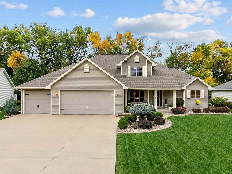 Pride of ownership is evident the moment you pull up to this gorgeous custom built one owner home! Treelined back yard w/ seasonal stream from Quarry adds to the charm. Beautiful landscaping & covered front porch greets you! Inside you will be drawn to the 2 story fireplace! Kitchen w/ hard surface counters & snack island. First floor office & master suite is a plus! A great place to unwind after a long day is in the 3 season room... hot tub stays. Upstairs find 2 more spacious bedrooms, full bath & loft area. Lower level is finished & great for entertaining. Village of Fox Crossings!