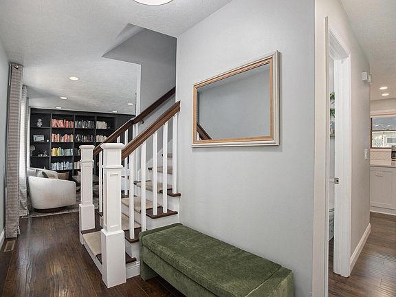 Conveniently located in a well-established neighborhood on Holland's desirable north side, this beautifully maintained home offers a timeless blend of classic craftsmanship and modern updates. The spacious front porch welcomes you into a versatile main level featuring a thoughtful layout with both formal and casual living spaces. The front entry provides access to the formal living room and formal dining, or leads into the family room, kitchen and dining area. The family room includes a gas-log fireplace with a classic brick surround, built-in bookshelves, and a sliding door to the backyard. The updated kitchen features quartz countertops, a stylish herringbone tile backsplash, stainless steel appliances, a breakfast bar peninsula, plus casual dining space. The formal dining room connects to both the kitchen and living room, creating a great flow for entertaining. The living room boasts a custom-built bookshelf and a unique wine closet, while shiplap detailing on the stairwell adds modern character. A convenient half bath is located near the garage entry. Upstairs, the bedroom wing offers three generously sized bedrooms, including a primary suite with a walk-in closet and ensuite bath featuring a tiled shower with glass doors. A second full bath, linen storage, and a spacious laundry room with cabinetry (included) complete the upper level. The newly finished lower level (2021) provides excellent additional living space, including a large rec room or 4th bedroom option with dual egress windows and a stunning third full bath with a walk-in tiled shower and stylish burnished gold fixtures. Rec room/4th bedroom hosts a shiplap accent wall flowing past stairwell accenting one of the walls in the exercise room. Other highlights include engineered wood flooring on the main level, quality finishes throughout,