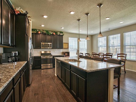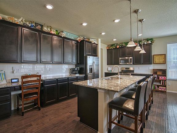 This beautiful Lewis Pointe home has it all! You will love this 2 story home with an open floor plan with plenty of natural light and gleaming engineered hardwood floors. Showing off the open style gourmet kitchen with large island, granite countertops, stainless steel appliances, pantry area, and eating space. The kitchen is open to the living area and is great for entertaining guests with its tile surrounded fireplace. The main floor also hosts an office with French doors. The second level features a large luxurious owner bedroom complete with an upgraded 5-piece master bath and a walk-in closet! The 3 additional upstairs secondary bedrooms are spacious and inviting including a bathroom with double sinks and a convenient laundry area. The bonus is the upstairs loft! The basement is huge and unfinished. Everyone will love this sizable back yard w/ covered patio to enjoy all of the beautiful Colorado nights. This neighborhood comes with trails, parks & open space with natural wildlife. Solar ready & energy efficient. Please ask the listing agent about solar details/agreement in place. Low HOA. Excellent schools in the Adams 12 school district and access to the new Denver Premium Outlet Mall or Orchard shopping center. Close to I-25 and E-470. This home won't last!! You are invited to tour this home today!