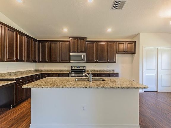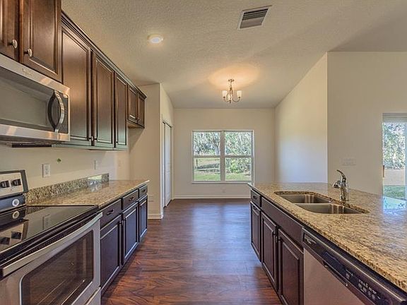 Under construction. Beautiful 4 bed / 2 bath / and large 2 Car garage with no direct rear neighbors!! Open floorplan, high ceilings, granite kitchen, luxurious walk in shower, upgraded 42" kitchen cabinets, stainless steel appliances, 16 SEER Trane air conditioning unit. Large open kitchen, and covered lanai and extremely low property taxes. Pictures are for illustration purposes only. Options may vary.
