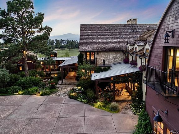 Southard Star Ranch is a stately, distinctive estate created to withstand the whims of time. Influenced by Pennsylvania Dutch architecture, here the highest value is the experience of living well. Experience a quality of life that demands a home that is both grand and unpretentious, breathtaking but still welcoming, imposing yet cozy and warm. Working from home? This is the ultimate setting. Open the door to an atmosphere of rugged elegance, the interior harmonious with the majestic setting. The authenticity is reflected in the reclaimed antique chestnut floors and beam accents. A warm iridescent glow emits from Venetian Plaster walls - a subtle work of art in themselves. The great room's substantial beamed ceilings emphasize grandeur, illuminated by large chandeliers and clerestory windows showcasing Pikes Peak beyond gardens and wooded meadows. A sunroom bridge provides access to dining wing, set apart for formal entertaining and special moments. The master suite is an oasis: sleeping room, office sitting room, gym, spa-bathroom, & closet dressing area. Separate from 4 ensuite bedrooms, a secluded staircase leads to a spacious office & guest suite. Across the drive, huge barn doors swing out to the ultimate man cave, packed with rustic lodge character.