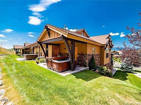 This backyard is the epitome of Serenity. Plantation Shutters. Hot tub and patio back up to open space. Large glass sliding doors face the beautiful Jordanelle Reserve and Wasatch back. Stubbed for outdoor BBQ.Granite counter tops, Efficiently laid out kitchen. TWO pantries in kitchen with one that has been wired for speakers in the living area. High tech features forsecurity, sound and water filter. Must see this Model Unit. Laundry next to Master. Mud room off thegarage for storage and coats. Check out the unique storage area in the garage. With a tandem parkingspace in the garage PLUS a third parking space adds extra value. HOA dues includes all utilities except power and gas. Fiber optic internet and DirectTV, water and sewer.