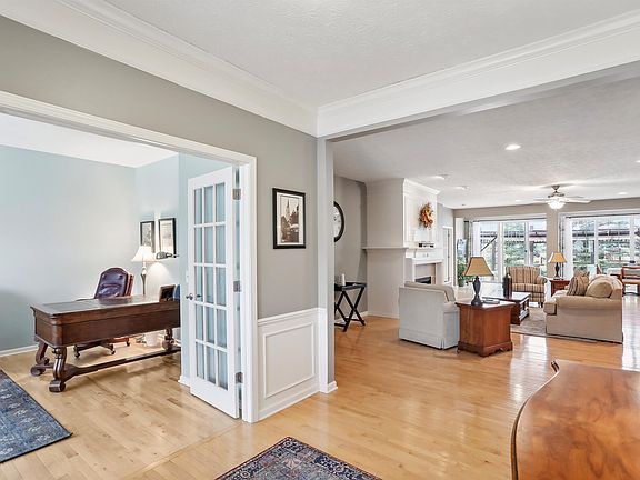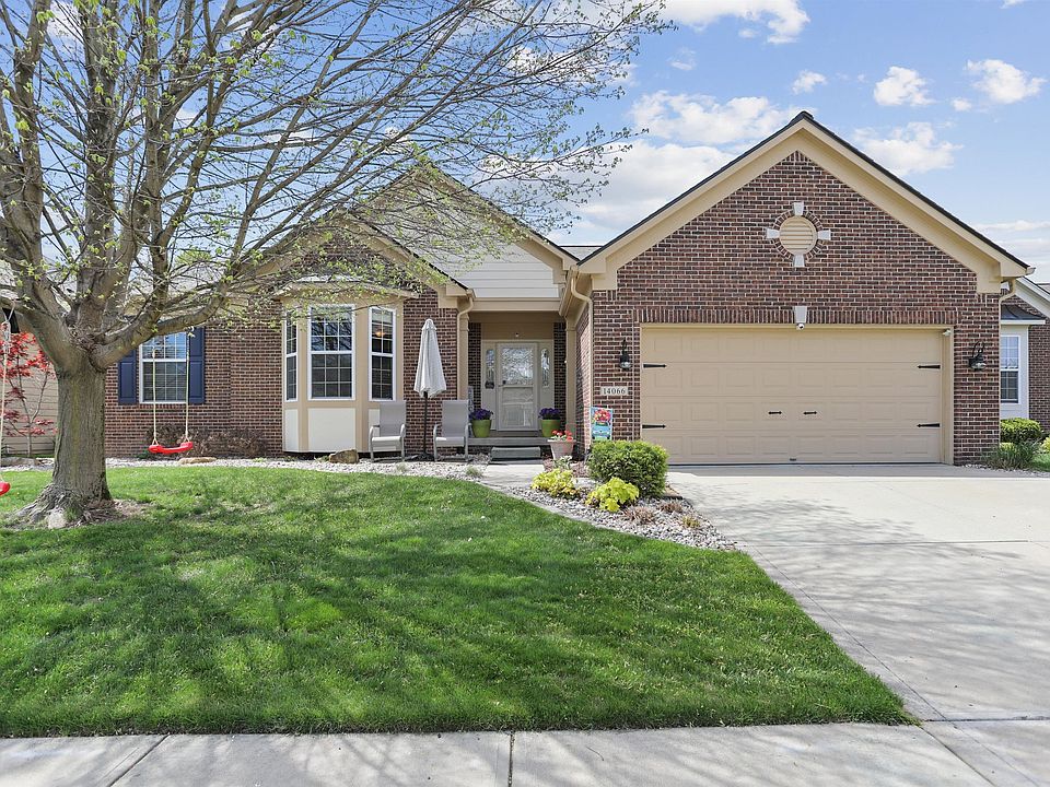 Beautiful Ranch on a full Basement in Carmel's popular Cherry Creek Estates. The largest ranch floor plan offered in the neighborhood, this 2800+ SQFT of main-level living offers 3 Bedrooms + a Den. Immediate wow-factor the moment you enter from the spacious & open design, wall of windows in the Sunroom, and beautiful hardwoods. The Great Rm features a gas fireplace & opens to the large Gourmet Kitchen with Stainless double ovens, recent gas stove conversion, lots of counter & cabinet space. Eat-In Dining as well as a Dining space off the Great Rm. The Sunroom overlooks the beautifully landscaped yard, peaceful setting featuring a pergola w/ added sunshade over the patio & a tranquil water feature. The Primary Suite features a beautiful refreshed bathroom w/ Granite Counters, white cabinets, soaking tub & separate shower. All 3 Bedrooms have newer carpet. The Den upfront has new hardwoods & enough space for dual purposes. The unfinished Basement offers plenty of storage space and potential to add another several thousand more finished space. Several recent improvements within 2 years include the HVAC, water heater, roof, garage door opener, and exterior paint. This home has been lovingly cared for and is all ready for new owners!