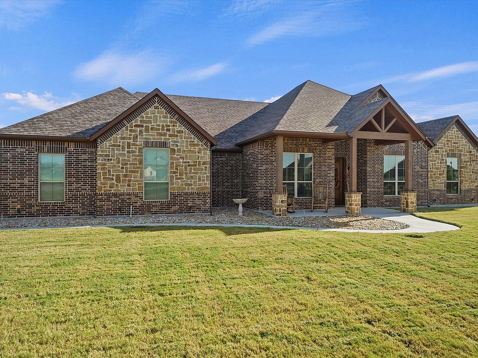 Welcome to your new home! This custom build, single owner home, was created in 2021 and has all the space you need. As you walk in, you have your separate office space with tons of natural light from the front and double glass doors to give that touch of privacy. Into your living area, you're met with 32' cathedral vaulted ceilings, ceramic tile floors throughout and a cozy gas stone fireplace. The open concept kitchen with a 12' island is perfect for those football watching parties with plenty of space for snacks and friends to gather during the big game. With a separate dining room next to the kitchen, you can still have space for breakfast with the family before starting the day. The primary bedroom, secluded on one side of the house away from the other 3 bedrooms, is oversized with tons of natural light flooding in through the large windows. Separate vanities in the en suite bathroom and large walk in shower with clawfoot tub, perfect for relaxing after a hard day. The other 3 bedrooms are a great size with a jack and jill bathroom and half bath for visitors. The bak patio is perfect for those relaxing Texas evenings while the dog plays in the acre backyard. Nearby you are close to highway I-20 and just W of the growing area with Bucee's, other shops and restaurants to enjoy. Come see yourself in this new home and enjoy everything it has to offer!