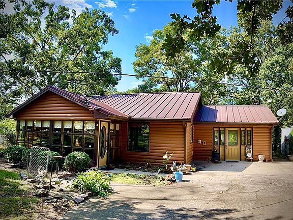 This home could be your very own little bit of heaven! If you have dreamed of having a beautiful log-sided home with a metal roof, on the outskirts of town, on a paved road with @ 4 acres to hobby farm and enjoy life, this is the home for you. The 42 pane sunroom overlooking the shaded front yard is the perfect room to watch the deer as they amble the countryside. The open concept kitchen/living room provides plenty of space to create your culinary favorites, while hosting family & friends. Or take some quiet time to curl up with a good book in the window seat of the lovely family room surrounded by Ozark log walls & wooden shiplap ceilings. Just out the back door, the 23'X23' covered deck provides overflow space to enjoy the outdoor views of nature, reminding you of all the reasons you will want this home. Stroll down the hill, or hop on your ATV, to explore the acreage & discover your own private open space to garden, have a few chickens, &/or find the perfect tree to put your deer stand in as you prepare for hunting season. If you like to keep busy, the 2 car, 34x30 insulated, detached garage has extra space for a workshop with a built in dust collection system, 220 amp electric & a window A.C. unit. Two other smaller outbuildings provide perfect storage &/or hobby opportunities. This home offers many special unique features such as an outdoor cooking/smoke shed & much more. Make an appointment today for your private showing to see all this home offers. It's priced to sell and won't last long!