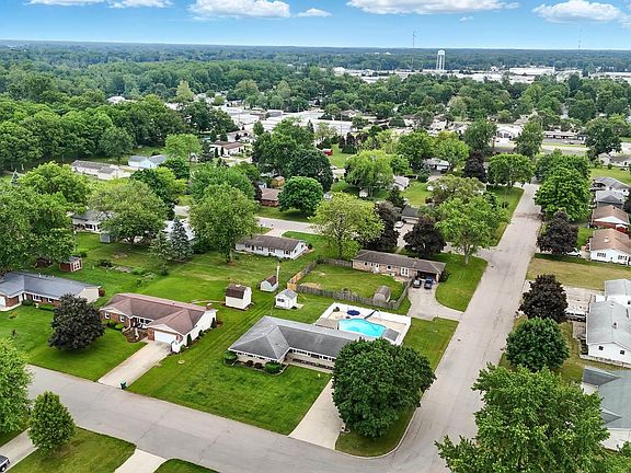 Beautiful Ranch Home on a Spacious Corner Lot in Melody Acres. Welcome to this stunning ranch-style home situated on a generous half-acre corner lot in the desirable Melody Acres Subdivision. Featuring a low-maintenance exterior and excellent curb appeal, this home offers comfort, style, and exceptional outdoor living. Step inside to discover the charm of original hardwood floors and a bright, spacious layout. The inviting living room boasts a striking limestone fireplace wall and flows seamlessly into the breakfast nook and kitchen—creating the perfect space for everyday living and entertaining. The kitchen includes ample cabinetry and a breakfast bar, all with scenic views of the backyard oasis. A large formal dining room adds to the home's versatile living spaces, ideal for hosting gatherings and holidays. Sliding doors lead out to a beautifully landscaped backyard, complete with a paver patio, hardtop gazebo, and an in-ground swimming pool featuring a diving board and slide—all surrounded by an expansive concrete patio and privacy fencing. The main level includes a private primary suite with en-suite bath, two additional bedrooms, and a full hall bathroom. The finished lower level offers even more living space with a generous family room, recreation area, guest bedroom, and additional room perfect for game nights or relaxation. Whether you’re entertaining guests or enjoying quiet evenings at home, this property is designed for making lasting memories. Don’t miss your opportunity to own this exceptional home in a sought-after neighborhood!