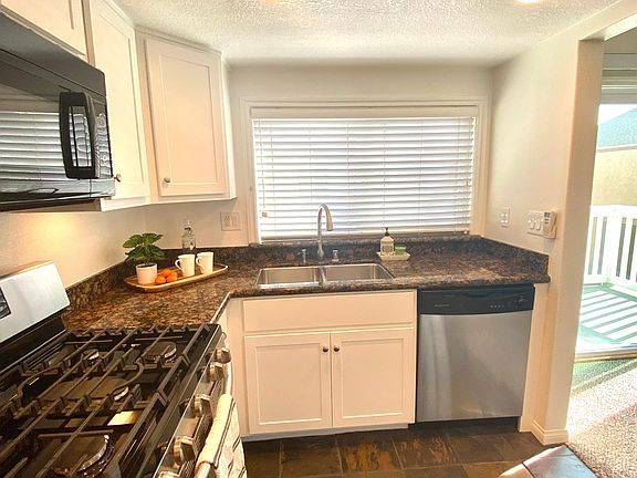 Beautifully upgraded 2 Bedroom/1 Bath in desirable HB area! Enter into the light, bright, and spacious living room that boasts soaring vaulted ceilings, dual pane slider doors, and cool ocean breezes. The upgraded kitchen offers stainless steel appliances, newer five-burner gas range, granite countertops, bright white cabinets, plenty of counter space, and includes fridge. Enjoy BBQing and entertaining all year long on your spacious balcony that flows seamlessly off the living room. The two large bedrooms offer ceiling fans, dual pane windows, and mirrored closet doors with plenty of storage and bright light! Upgraded bathroom features lots of counter space, granite countertops, newer white cabinetry, and top-of-the-line, BRAND NEW STACKABLE WASHER/DRYING UNITS! One car detached garage is conveniently located just steps away from the unit. Located on the coveted little stretch of California St. that is quiet and isn't a main thoroughfare...it's a little pocket that just screams "community". Walk or bike to the beach, Lake Park, Pacific City, and many dining options! Unit also has new attic fan which serves as AC! Call or text Erin to arrange showing. Owner pays for water, trash, and gardening on property. Renter responsible for gas and electric. Security deposit is $2400. No smoking, no pets. Single car garage has clicker and keypad.