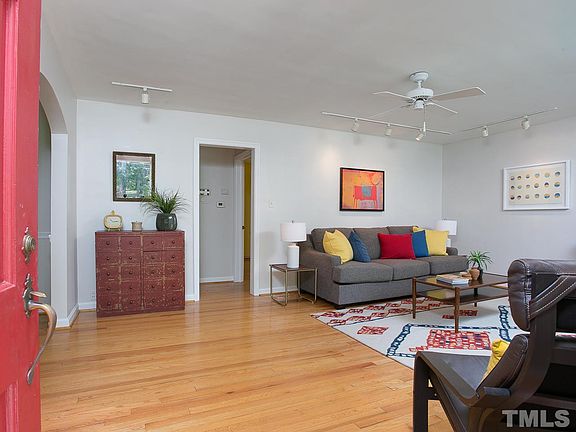 This lovely, brick ranch perched in the heart of Watts Hillandale neighborhood will thrill you with its many gracious living rooms and private, outdoor living spaces. Large kitchen boasts new wood floors and green granite countertops. Sunroom was turned into an owner suite with added full bath and tiled walk-in shower. Screened porch is perfect for distant gatherings and don't miss the artist/yoga studio w/ window unit. Double lot with stream adds lovely tree canopy & natural setting to this urban oasis.
