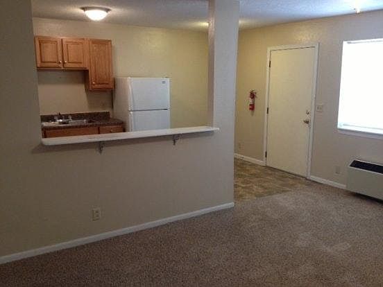 Regent Court Apartments is located at 1407 Center Street! 1-block west of Emporia State University. This location is perfect for the student or teacher looking for the convenience of walking to class. No need to start a car and move it. Very nice 2-bd, 1-bath open floor plan with bar area and front door parking. Great patio area in front of every apartment for lawn chairs and BBQ area. On-site laundry. Very nice neighborhood. Tenant only pays electric. Landlord pays water/sewer/trash bill. Why drive to school when you can live across the street and save on gas. Tenant only pays Electric!!