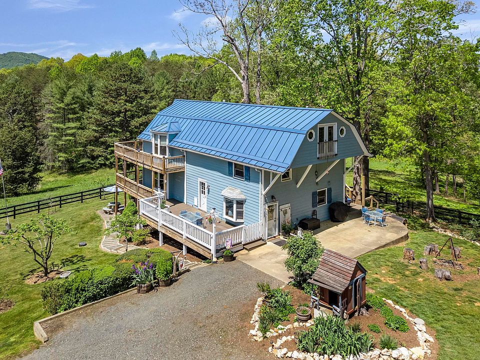 A ONE-OF-A-KIND, incredible 100 plus year-old barn transformation. This home is balanced with a rustic style (conserved old beams and poles from the barn) with modern livability and comfort. A large, 2 story addition was added on in 2010. You will find a variety of woods that have been reclaimed and newly milled (walnut, chestnut and coffee). There are so many ways to enjoy this home. The upstairs has an amazing kids' playroom with a climbing wall, swings, loft fort and more. Plenty of extra storage throughout the home. The terrace level, which walks out to a large patio has been converted to an Air BnB (Fox Den) that produces on an average $15,000/year. It could easily be used as in-law suite as well. The land is EXCEPTIONALLY BEAUTIFUL. Full of fruit trees, AMAZING mountain views that can be seen from the double decks, a fenced in paddock, chicken coup with a run, open pastures, fenced-in garden spot with raised beds and 2 sheds (being sold as-is). There is also a full house generator. The tin roof was installed in 2015 and the 3 board black fence that surrounds a large portion of the land was recently painted. You will not want to miss this one!