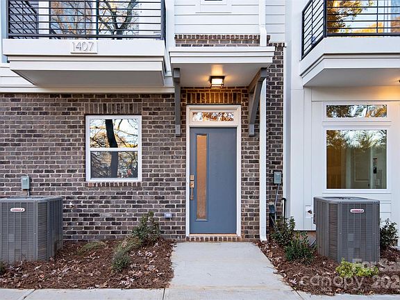 Contact Sales Agent for Special Financing Incentive! 4-story NoDa townhome, w/ 9' ceilings, 2-car tandem grg, all appliances included. Top floor Rec Room w/ powder & rooftop terrace w/ TREX decking. Open layout on 2nd floor; sliding doors off kitchen lead to a small terrace with a view of mature trees. Kitchen w/ island, 42" cabs w/ trash pullout, quartz counters, tile backsplash, LED under-cab lights, pantry cabinet, large SS undermount sink, & GE SS app w/ gas range & French door fridge included. GE stacked washer/dryer included. Premier Bath has raised cabs, quartz counters, tile floor, large tiled shower w/ semi-frameless glass. Secondary bedroom has WIC; bath has quartz counters, tile floor. Easy low maintenance LVP flooring at the garage entry, throughout 2nd flr & 3rd floor hall & laundry. Stairs include oak treads & straight black wrought iron balusters for a clean, modern look.