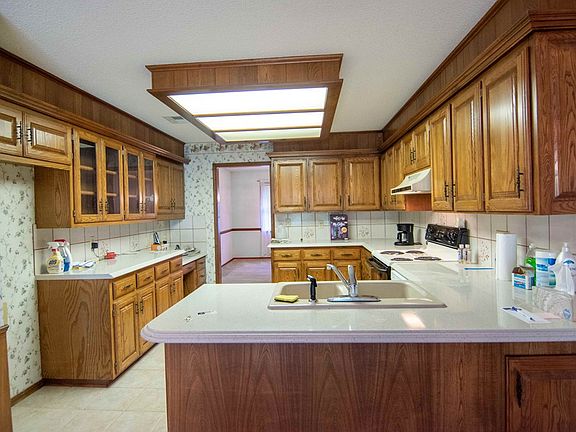 Beautiful brick home in one of the nicest neighborhoods in Coffeyville. Walk to LeClere Park to play tennis, go fishing, or walking on the trail. Set on the shaded back patio and enjoy the evening. Inside relax in the vaulted great room curled up in front of the fireplace with a book from the built in bookshelves. There is a formal dining room / family room on one end of the kitchen with a tiled area for table and chairs at the other end of the kitchen. Both bathrooms have dual vanities providing tons of counter space and Onyx shower surrounds. With 3 Bedrooms on one side of of the house and the master on the other there is plenty of privacy.