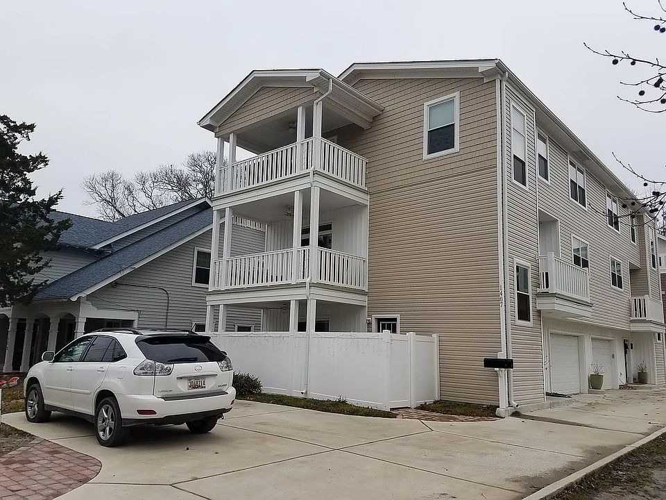 Outdoor amenities abound with three separate decks, plus a patio off the ground floor. These offer ample space for relaxing, grilling, or enjoying the beach lifestyle. There's even an outdoor shower for rinsing off after a day at the beach and an oversized garage with storage for bikes, beach gear and more.