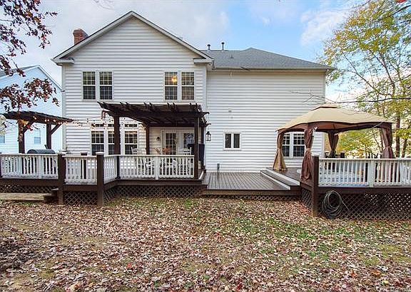 Beautiful inside & out! 2-story foyer w/wood treads & beautiful runner make for a grand entrance. All 4 bedrooms up are large, w/ample closets. 1st floor all hardwood, w/tile in kitchen; formal living room/dining room, plus great room w/fp (gas or wood). 36" gas range/elec oven; SS appliances, fridge remains. Large fenced yard is private, w/protected space behind; extensive deck & gazebo. Newer: water heater, dishwasher, hot tub (can stay or go), roof (2012). Front/back irrigation, storage shed.
