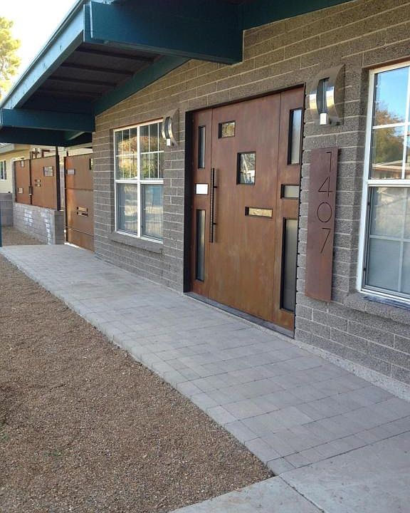 Mid-century modern Ralph Haver home in Mayfair Manor on expansive lot. Just a stone's throw from The Vig Uptown, Rokerij, Luci's and Richardson's. Haver trademark details: clerestory windows, exposed beams. Remodeled kitchen with skylight, newer cabinetry, gas oven/range, built-in microwave/convection oven, recessed lighting. Newer dual pane windows and doors. INCREDIBLE Professionally designed and built master bed/bath addition features: wood floors, lots of natural light, expansive walk-in closet, spacious master bath with dual sinks, soaking tub, separate shower. Newer roof, AC and electric panel. Large utility room. Copper plumbing. SRP irrigation to back yard. This home is VERY unique! Small dogs only. Cats disallowed due to owner allergy.