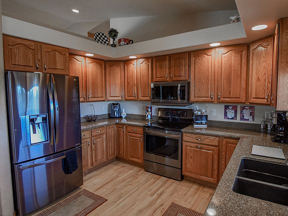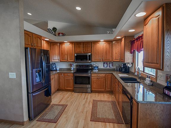 Welcome to this stunning home located in the highly sought-after Southeast Rapid City. Step inside and be captivated by the beautiful features and thoughtful design. The large kitchen is a chef's dream, boasting exquisite quartz countertops and a convenient breakfast island complete with four chairs, perfect for casual dining or entertaining guests. The main level is highlighted by a spacious master suite, offering a peaceful retreat with its generous size and luxurious amenities. With two additional bedrooms and two and a half bathrooms, there is ample space for family and guests. Working from home will be a pleasure in the large office located in the lower level, providing a quiet and productive environment. The walkout basement adds versatility to the home and offers easy access to the outdoors. Every detail has been carefully chosen, and the home is beautifully decorated, creating a warm and inviting atmosphere throughout. The central vacuum system adds convenience and makes cleaning a snap. Parking is a breeze with the two-car finished garage, providing ample space for vehicles and storage. Step outside onto the covered deck and take in the breathtaking views of the expansive tree-covered canyon. This outdoor space is perfect for relaxing, entertaining, or simply enjoying the peaceful surroundings. Don't miss the opportunity to make this stunning home your own. Schedule a showing today and experience the beauty and tranquility this home has to offer.