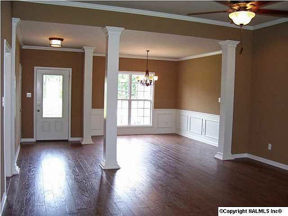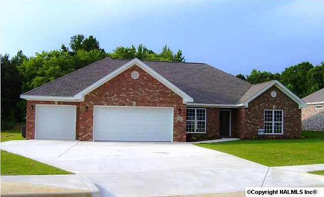 Move in Ready! NEW Home in Hartselle! Builder Pays Up to $3000 in Closing Costs! 4 Bedroom, 2.5 Bath home, Open Floor Plan w/formal dining, large living room w/hardwoods, molding, gas log fireplace, kitchen with eat-in serving bar & breakfast room, Pantry, SS appliances, Formica Counters, custom cabinetry & tile floors! Master Suite is isolated, great size w/large walk-in closet, & glamour bath w/separate shower, his/her sinks! Mud Room/Laundry Room from 3 Car Garage w/Floored Attic Storage.