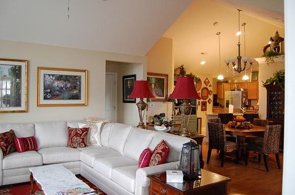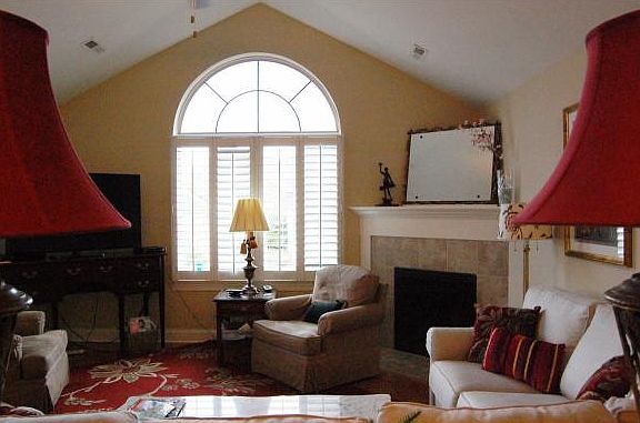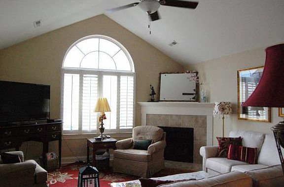 Enjoy the magnificent view of the flowing fountain and swimming pool. This is an absolutely beautiful condo duplex. Vaulted ceilings and arched windows create and atmosphere of light and spaciousness. There are some plantation shutters, granite countertops, double ovens, ceiling fans and many more upgrades. This two bedroom two bath home is open from the kitchen, the dining area and den with fireplace. The pantry and utility room offer and abundance of storage. The laundry room with utility sink is located just off the kitchen area. The office has custom built book shelves and could possibly serve as a 3rd bedroom (no closet). The new owner can enjoy the sunroom all year, a view of the saltwater pool and pond with fountain. The patio has black fencing and the landscaping is very attractive. The attic has pull down stairs and is accessible from the garage. Live a carefree lifestyle in the beautiful home.