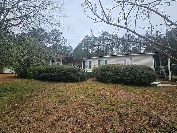 Peaceful, quiet country living on 9 acres spread including pasture and towering hardwoods! 3 Bedroom 2 bath 26x66 mobile home with carport, and covered porches! Spacious living area includes den with fireplace, kitchen, dining, and living rooms! Split bedroom plan with large primary bathroom! Sit on the front porch and watch the wildlife or your own animals in the pasture! Hot tub on rear porch! Beautiful shrubbery offering privacy with house situated out of site of the paved road! Perfect getaway, or permanent residence! See photos! HUGE pole barn with a workshop attached, wired and set up for camper on back side of barn!