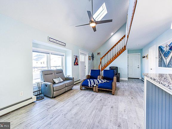 Totally renovated waterfront contemporary in Forked River Beach featuring 3 bedrooms with 2 ceramic tiled baths. Totally open non-reversed living floor plan with versatile laminate flooring; concept kitchen with granite counters & full SS appliance package; soaring vaulted ceiling; recessed & pendant lighting; ceiling fans w/lights; bonus family room with wall-of-windows; new Andersen windows; solid core interior doors; stacked W/D; new tankless HWH; new gas baseboard heat/ductless central air; new cedar impression vinyl siding; walk-in attic storage; new roof w/skylights; and oversized 1 car direct entry garage. Enjoy an active waterfront lifestyle on the pavered rear patio with awesome Forked River waterviews & evening sunsets, vinyl bulkhead with dock & new shore power pedestal, and just seconds to the open bay. Conveniently located to all area shopping, restaurants, Community Bayfront FunYard, transportation GSP Exit 74, and the best beaches at the Jersey Shore. Low property taxes & flood insurance. Start your family memories today!