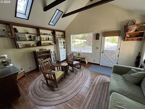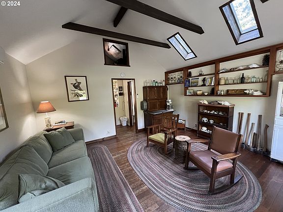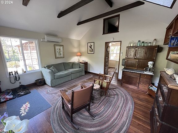 Charming is what you get with this quaint Cedar shake cottage. Vaulted beamed ceilings and skylights allow for plenty of natural light; creating a sense of spaciousness. In addition to a new driveway and parking area the cottage features a mini-spit/heat pump and new breaker box panel both installed in the Fall of 2023. French doors off the bedroom lead to a writer's nook with built in bookcases and a desk. There is also an outside entrance from this room. Along the rear of the cottage the is a 16'x32' deck overlooking a bubbling spring fed creek with plenty of room to bbq and entertain. Just off the back deck there is a 12'x 16' studio/shed with electricity. All of this is on a generous size 100'x150' in town lot that offers privacy and convenience. This property is the quintessential Coastal Retreat Cottage, make an appointment to see it today.