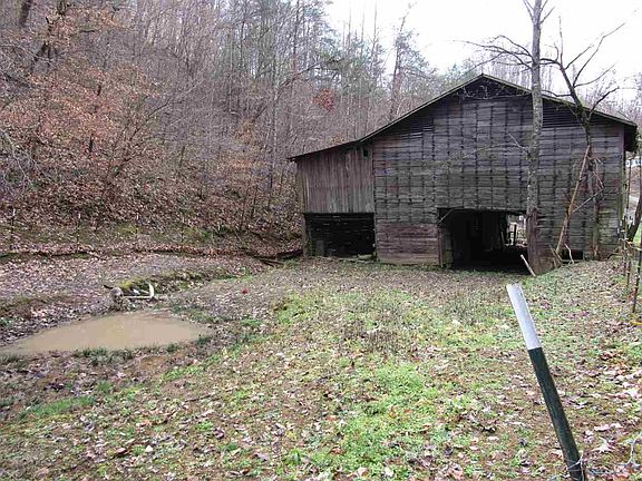 This property is 57 ACRES of private land where three large hollers converge at a creek & substantial pond that is believed to be spring fed. There's a good barn and a great mix of lands for hunting, planting, animals and housing. Electricity, a well, and septic serve an existing trailer. There appear to be two wet weather springs, one near the trailer and one near the barn. There are several good places for building, near the road or near the pond. Plus, there is a large flat where you can build high on the mountain with a fabulous view. A good gravel drive is already there. It goes all the way up on a long gradual rise. The trailer has been occupied by the same tenant for several years. They will stay or go, buyer's choice, 30-day notice needed. There are 3-4 fields. Property is surveyed but not recordable.