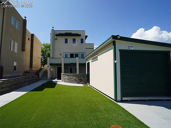 Custom-built home with breathtaking views of Pikes Peak from all the west-facing windows and balconies displaying the ever-changing daily portraits of the Rocky Mountains. This property offers 3 Master Suites each with enormous walk-in closets and private balconies. This home has all the upgrades you could want; fully xeriscape'd and maintenance-free AstroTurf, Beetle Kill Blue Pine Flooring throughout the main level and matching custom built Beetle Kill Blue Pine sliding Barn Door window coverings in the bedrooms carrying the color and wood style throughout the home, additional outdoor storage shed in matching color scheme, heated and air conditioned over-sized 2 car attached garage with its own wall-mounted TV (included) and automatic garage door opener, 360° video/voice surveillance system, thermostat controlled A/C and Forced Heat in the home, whole house humidifier, Heavy Duty Exterior Security Doors, Vinyl Crank Windows, Wood Burning Stove, Stainless Steel Appliances, and a Shatterproof Basketball Backboard & Rim Combo Hoop over the exterior garage door to top it all off. Every level of this home has outside patios with spectacular unobstructed views of the front range. The home is located within minutes of I-25, HWY 24 and Garden of the Gods. Centrally located in walking distance to Downtown Colorado Springs, Old Colorado City and just a short drive to the the eastern part of the Colorado Springs Powers Corridor, short commute to Fort Carson, Schriever AFB, the Air Force Academy and to all the attractions and events El Paso County has to offer.