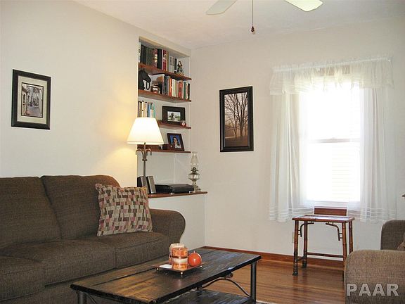 Simply Adorable!! You'll fall in love the moment you enter this immaculate north side ranch with full mostly finished basement and attached garage! Beautiful refinished hardwood floors and tastefully decorated throughout! Nice updated oak kitchen includes appliances (sold as is). Full basement has nice carpeted family room and gas fireplace stays. Lots of newer features: Siding, windows, roof shingles, etc. Private backyard with shed. Great location!! Room sizes and sqft. are estimated, not guaranteed to be correct. SQFT. per Tazewell County.