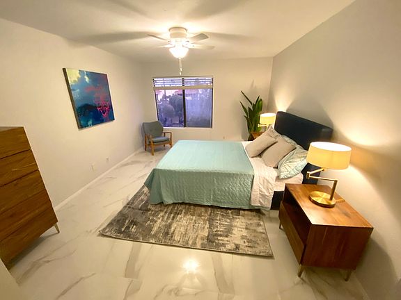 Style meets location at this Movie Colony gem. Enjoy the best of Palm Springs in this freshly remodeled condo featuring cathedral ceilings, oversized porcelain tile, new fixtures, and stunning mid century furniture. Amenities galore! Soak up the sun in one of the three heated pools, relax in the spas, or enjoy a game of tennis on one of the four courts. Additional amenities include covered designated parking, fitness center, shuffle board and smart TV with steaming. HOA subsidized high speed internet & premium cable w/ HBO available for only $50 per month. Water sewer trash includes. Tenant pays electric and gas. Unfurnished available by request. Great price at a great location. Will not last long! HOA subsidized high speed internet & premium cable w/ HBO available for only $50 per month. Water sewer trash included. Tenant pays electric and gas. Unfurnished available by request.